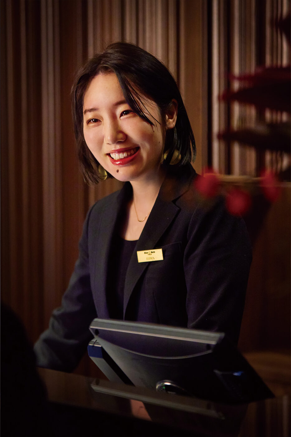 小さい頃から音楽が好きで、ライブハウスや音楽フェスによく足を運んでいた。音響専門学校卒業後はレコーディングスタジオへ勤務し、受付やブッキングに関わる。好きなアーティストが出演していたのをきっかけにブルーノート東京のことを知り、食にも興味があったこともあって「音楽」と「食」どちらも楽しめるブルーノート東京で働くことに憧れを抱くように。フロントスタッフの求人情報を見かけ、スタジオでの受付業務経験も活かせるのではと考え入社。アーティストが一流でプロフェッショナルであるのはもちろんのこと、各セクションのスタッフが「お客様に一流のサービスをご提供できるように」「アーティストに万全のコンディションで演奏していただけるように」とベストを目指して働いている姿に日々刺激を受けながらフロント業務にあたる。現在はセクションのチーフとしてスタッフの教育にも注力し、ブルーノート東京ならではのホスピタリティーの向上に努めている。